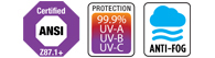 Excellent anti-fog performance plus abrasion, chemical, and UV resistance. Meets demanding industry test requirements (ANSI Z87.1+, EN166K, EN166N, EN166UV).